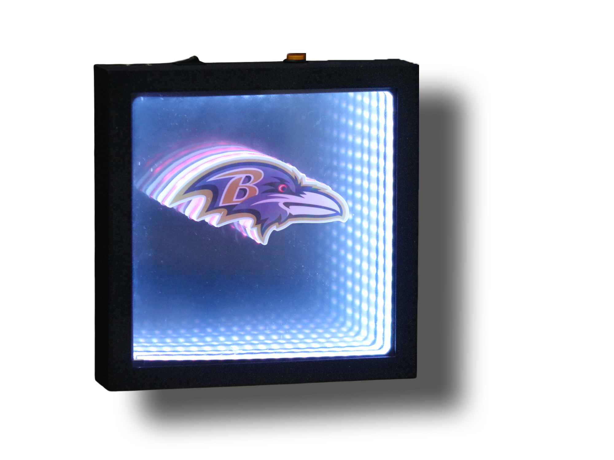 Our Infinity mirror is a mesmerizing tunnel of LEDs that seems to stretch into endless depth. Proudly designed by us as well as manufactured, assembled and programmed in the USA, each piece blends modern tech with optical illusion to bring your design to life.